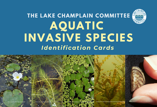 These identification cards highlight sixteen different AIS – including twelve plants, three mollusks, and one fish – that pose a significant threat to Lake Champlain. Of these, some are considered “target species”: AIS that have been detected in Lake Champlain. Others are “watchlist species”: AIS that have not yet been detected in Lake Champlain but are present in nearby water bodies and could potentially be introduced. Click here for the ID cards.