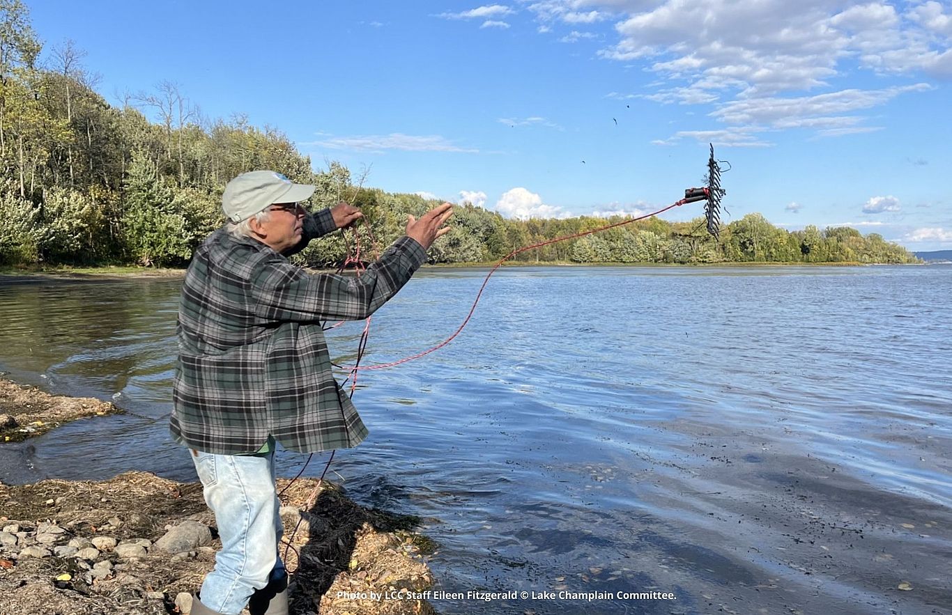CHAMP volunteers receive annual training, equipment, and support to survey for AIS in Lake Champlain. Participants walk or boat along shoreline sites, rake in samples of aquatic life, and report their findings of key target invasive species to LCC at least three times during the summer and fall.