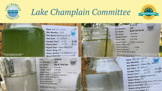 If you’ve missed recent weekly emails you can find them at this link on the Lake Champlain Committee (LCC) website. They’re worth checking out for the compilation of reporting results, monitoring tips, and visuals of blooms witnessed during the 2022 season.