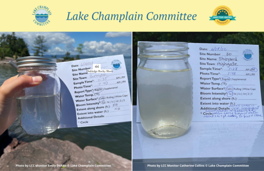 Thanks again for being part of the Lake Champlain Committee’s community science cyanobacteria monitoring team! Please scroll on through this email for your reporting links, username and password, and to view photos of clean water conditions at Lake Champlain’s Button Bay, Oakledge Park, North Beach, and Valcour Island. Check out a cool monitor innovation for water sampling without getting wet and ingredients for a bloom.