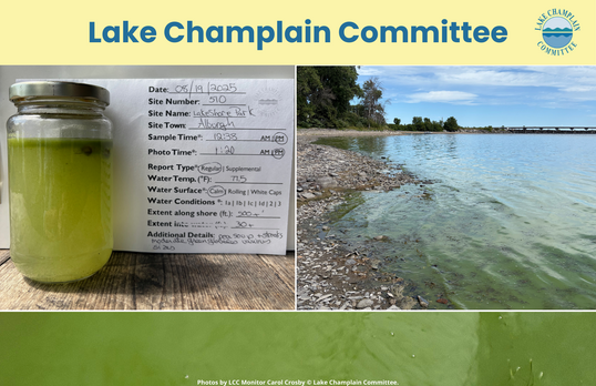Thank you for signing up to receive the Lake Champlain Committee (LCC) Cyanobacteria monitoring reports! Monitoring began the week of June 15 and will run through early fall. Each week we’ll send you an update about conditions monitors are finding on Lake Champlain and at select inland Vermont lakes. This week’s report covers results from Sunday, June 15 through Saturday, June 21, 2025. If you’d like to learn more about cyanobacteria or join our monitoring team please sign up here. We will also hold informational sessions about how to recognize cyanobacteria later in the summer, so stay tuned.