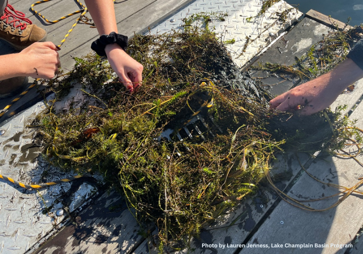 Humans have the greatest influence on the spread of invasive species—hitchhikers need a ride to get to where they’re going, and humans are highly-mobile hosts that give rides knowingly through releasing exotic aquarium plants, and unknowingly on watercraft. Fortunately, humans can also play a key role in early detection and spread prevention. That is why the Lake Champlain Committee (LCC) is piloting a volunteer community science program to monitor for invasive species. The Champlain Aquatic invasive Monitoring Program (CHAMP!) recruits, trains, and supports volunteers to survey for aquatic invasives at sites throughout Lake Champlain. Volunteers paddle or walk along a shoreline site, rake in samples of aquatic life (with a literal rake), and report their findings to LCC three times during the summer and fall. We hope to grow this program to cover high priority areas in Lake Champlain. To learn more about CHAMP and sign up for the 2024 season, contact LCC’s Education and Outreach Associate Eileen Fitzgerald at eileenf@lakechamplaincommittee.org and lcc@lakechamplaincommittee.org. With the data gathered by dedicated CHAMP volunteers, management professionals can identify populations for rapid response and build a database of information on where they aren’t established. Surveys aid in early detection -- we train volunteers in identification of “watch list” invasive species that have been reported in the Hudson River and other nearby waterbodies, but not yet Lake Champlain.