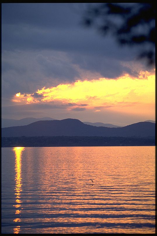 In short, though water has a color, the lake’s color is ever varied. Throughout a year the lake color will change depending on whether recent rains have washed in sediment or depending on the presence or absence of algae. Within a moment, the wind can ripple the shore of the lake affecting the amount of blue reflected. The simple movement of the observer up or down in elevation or the sun up or down in the sky will change the reflections of the lake. An artist could spend a lifetime trying to capture the ever changing interplay of light and shadow and color on Lake Champlain.