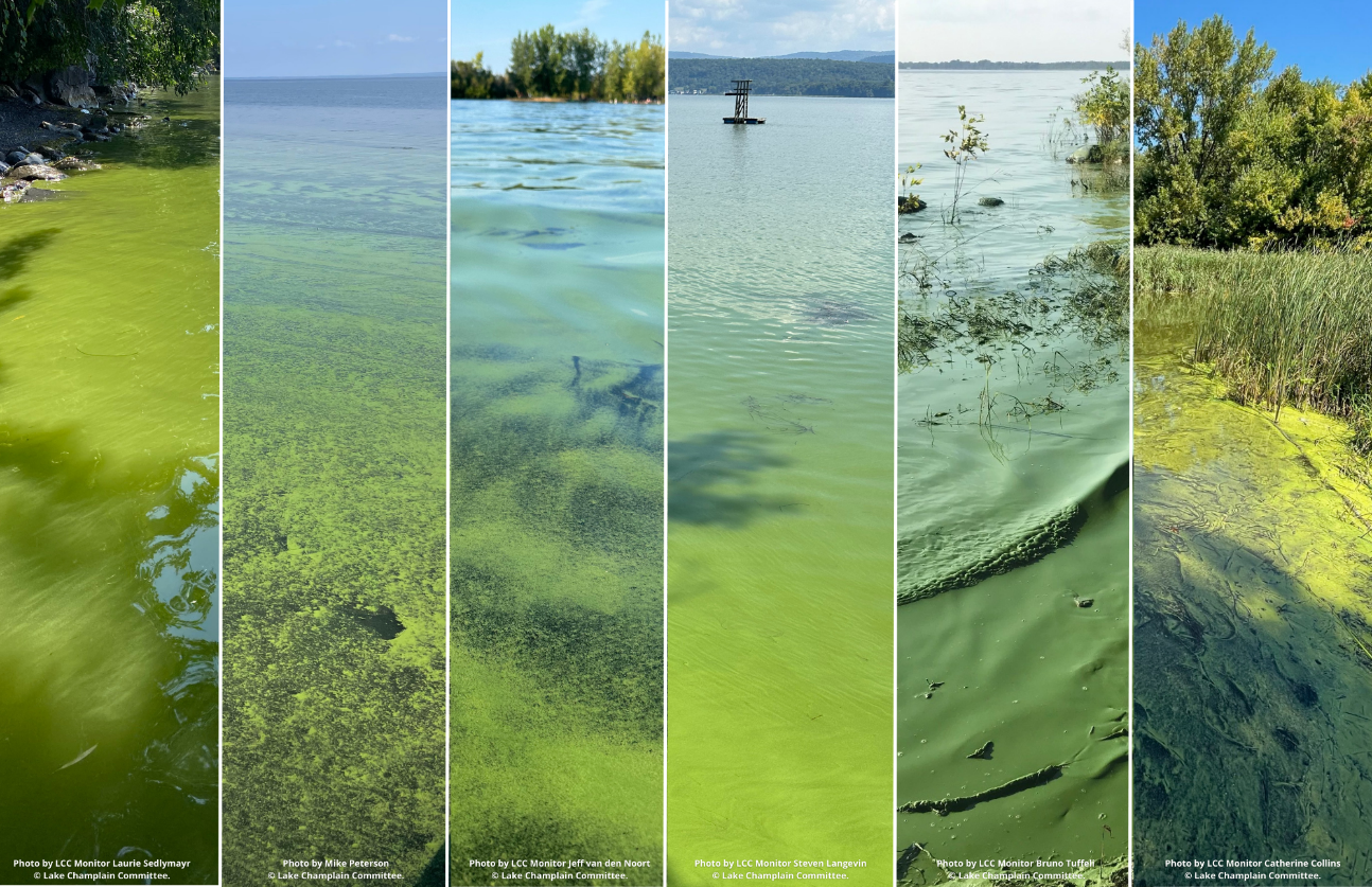 Detecting cyanobacteria is like learning a new instrument or sport—it takes practice. Explore the cyanobacteria section of LCC’s website for a host of resources that will help you identify cyanobacteria. Attend an informational session to learn more or get trained to become a cyanobacteria monitor and help us gather information about water conditions on Lake Champlain and inland lakes. Subscribe to LCC’s weekly water quality reports: https://www.lakechamplaincommittee.org/lcc-at-work/cyanobacteria-in-lake/cyanobacteria-weekly-report-subscription. During the monitoring season you’ll receive weekly emails about conditions reported during the previous week along with photographs and information to help you learn how to recognize cyanobacteria and differentiate it from other phenomena like duckweed and filamentous green algae which don’t produce cyanotoxins.