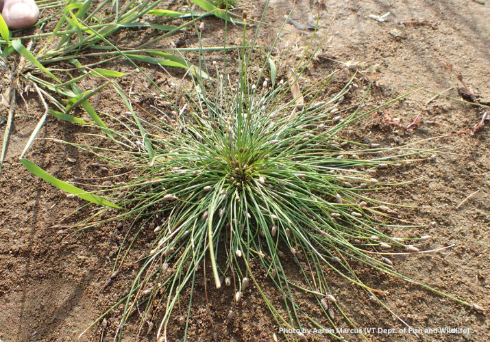 Wrights spikerush (Eleocharis diandra) is a globally rare plant—they have only been recorded at 20 sites around the world. Among those sites are popular beachgoer spots along Lake Champlain’s Vermont shoreline including North Beach and Leddy Beach in Burlington, Niquette Bay State Park in Colchester, and Alburgh Dunes State Park in Alburgh. The plant is a small tufted sedge that prefers dry summers. In 2016, a dry year with below average lake levels from May to December, the plant had a population boom at its few known sites as more beach habitat opened up with the receded waters. It can seem contradictory, but our changing climate is trending toward a pattern that is not quite as simple as “rainier summers.” Climate change increases the volatility of precipitation patterns in the region and can cause floods or droughts, and because of shifts in the water cycle, different regions of the watershed can experience different climate impacts This can make predicting the future of species that rely on certain precipitation regimen difficult.