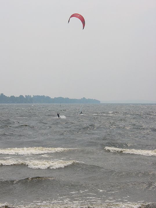 Gary Kjelleran recalls windsurfing off of Charlotte during Hurricane Bob when he took a nasty fall. A large wave knocked him off his board and he broke his leg. There were no other people on the rough water. He managed to use his sail to drag the two miles to shore despite the injury. Luckily a stranger saw him struggling toward shore and was kind enough to give him a ride to the hospital.