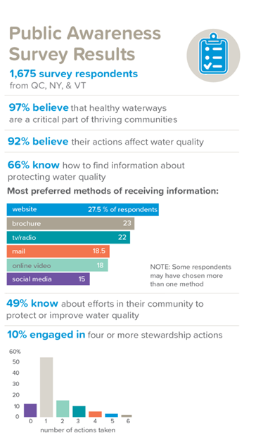 The “informed and involved public” section of SOTL highlights a disconnect between people’s knowledge and concern about lake health and their willingness to act. The 2021 public awareness survey found that 92% of respondents believe their actions affect water quality, but only 10% of respondents engaged in four or more stewardship actions. The report noted that outreach declined substantially during the COVID-19 pandemic but programs to educate and involve community members are rebounding. LCC is a partner on the Champlain Basin Education Initiative, which after several years of hiatus during the pandemic, just hosted the Watershed for Every Classroom program for educators across the basin.
